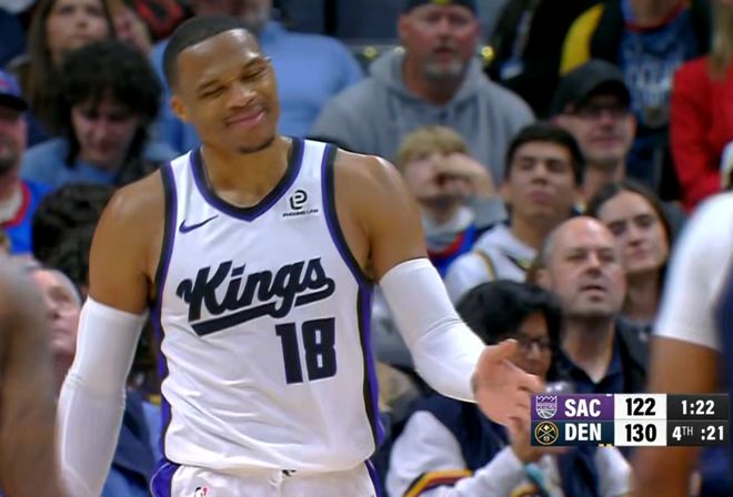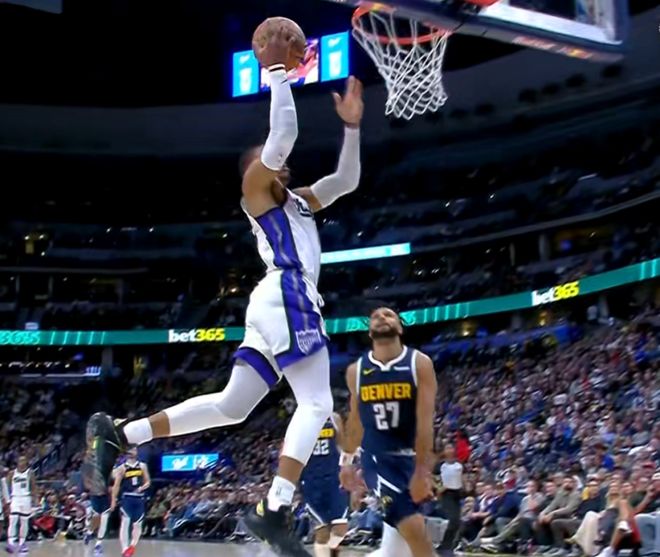 神龟要是在掘金的替补席,上来打打挡拆,效果肯定会完全不同。现在面对掘金队,他其实是最渴望证明自己的一个,国王今年肯定是没有什么成绩方面的要求了,上去正常打让威少打得开心,其实也就可以了。果然全场大威少有三分,有突破,有罚球,有篮板还有传球,末节还剩3分钟,他还在突击上篮咬住比分。最终26分也是国王全队的最高分,不得不说,威少现在的能力留在国王确实是浪费掉了,有点可惜。