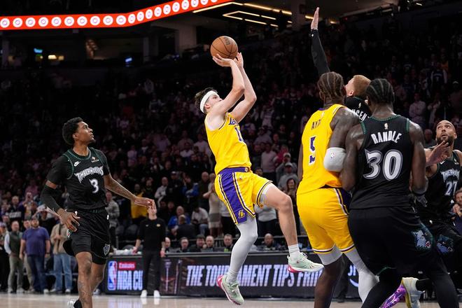 当时里夫斯心中,肯定想起了洛杉矶湖人队史多位超级巨星,奥尼尔、科比、费舍尔、詹姆斯。因为那一刻,里夫斯就是他们。就在今日早些时候结束的一场比赛里,湖人116-115绝杀森林狼,拒绝逆转。在多人缺席的情况下,湖人靠着残阵击败了这位近几年难缠的对手。