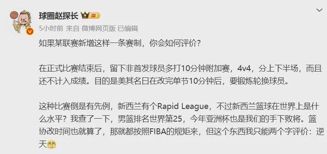 CBA终究不同于NBA,人家才是纯粹的商业联盟,我们的联赛则要更多为国家队服务,近年来的种种举措都是为了更好为中国男篮输送人才,接下来最主要目标莫过于顺利拿到2027年世界杯的参赛名额。