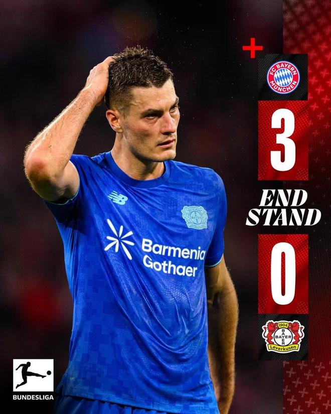 在本场比赛0-3输给拜仁慕尼黑后,勒沃库森德甲客场不败纪录遭终结,这是勒沃库森自2023年5月以来遭遇的首场德甲客场败仗,当时他们在德甲收官战0-3不敌波鸿。