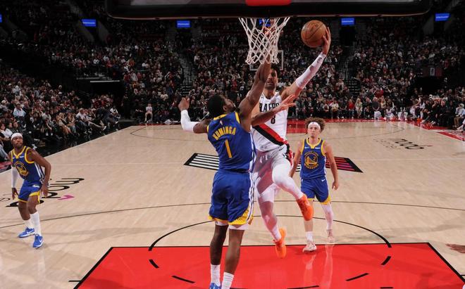 克林根命中远投,库明加隔扣克林根打成了2+1予以回应。库里与阿夫迪亚对射三分球,格兰特3罚全中,巴特勒、库里与阿夫迪亚在禁区斗法。夏普中投得分,格兰特上篮打进,霍勒迪轰进远投,格林2罚1中,阿夫迪亚再进三分球。半场打完,开拓者以69比56领先。