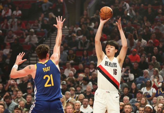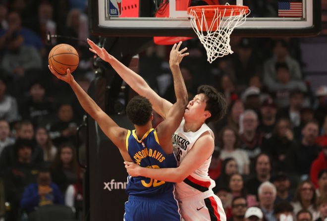 杨瀚森之后还送出两记大帽,也是帮助开拓者大胜勇士,终于获得NBA生涯首胜。