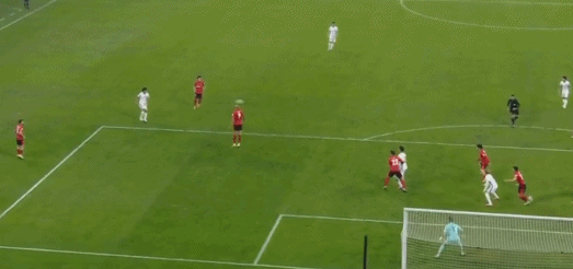 比赛的第46分钟,杰梅恩-良近头球冲顶被蹇韬飞身封出。